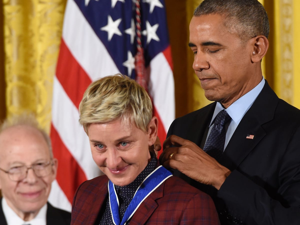 Comedian and talk show host Ellen DeGeneres should add bona fide property tycoon to her resume. Frazer HarrisonGetty Images. The honorees of the Presidential Medal of Freedom tried out the latest social media craze ahead of.
